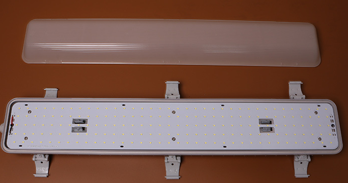 此款三防灯套件是专为客户开发来做LED贴片三防灯的。材质为全PC料,全新一体式无搭扣设计,背部单独接线盒,安装简易。